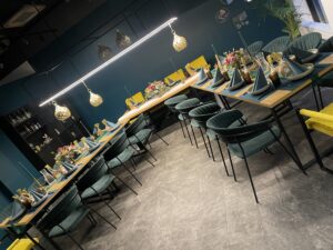 Lisaks pagarikojale on Tüümian ka ideaalne koht erinevate ürituste läbiviimiseks – üks ideaalne võimalus selleks on toidukoolitus Tartu südames meie armsas Saiapalees. Pakume võimalusi kolleegide, sõprade või perega veeta mõnusalt aega kokates, süües ja nautides. Meie juurde mahub ühiselt süüa tegema 30-40 inimest, aga võite tulla ka kahekesi – teie seltskonna päralt on terve meie kohvikukene, millel üle 200m2. Koolitusi oleme Getteri juhendamisel teinud 2021 aasta lõpust ja kogemus on suur – kokku on tehtud juba üle 300 koolituse. Tagasiside noppeid saate lugeda siit.