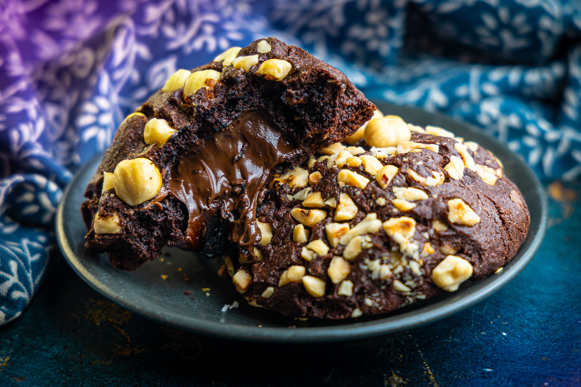 Suussulav šokolaadiküpsis metspähkli-šokolaadikreemiga
